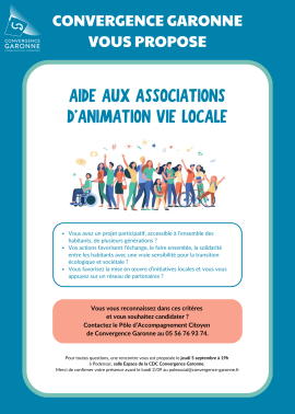 Dans le cadre de ses compétences d’action sociale d’intérêt communautaire, la Communauté de Communes Convergence Garonne (CDC) a engagé un travail pour renforcer sa démarche d’animation de la vie locale sur le territoire.