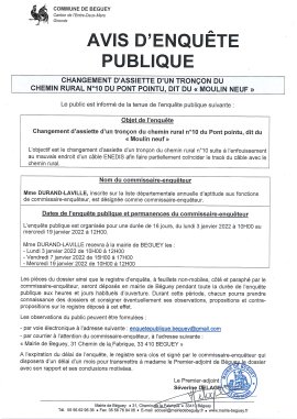OBJET : Changement d’assiette d’un tronçon du chemin rural N°10 du Pont pointu, dit du "Moulin Neuf"