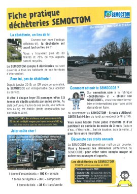 A partir du lundi 15 mars 2021, les 6 déchèteries du SEMOCTOM, dont celle de BEGUEY, passent en horaire de haute saison