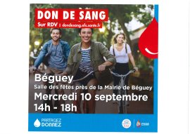 Venez donner votre sang sur la collecte de Béguey du 10/09 en prenant RDV via le lien : https://dondesang.efs.sante.fr/trouver-une-collecte/138854/sang/15-07-2025