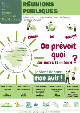 Au cours des 5 dernières années, un travail de concertation important et de co-construction entre différents acteurs du territoire (collectivités territoriales, associations, entreprises et citoyens) a été mené pour aboutir à un PCAET qui fixe des objectifs ambitieux pour le territoire Sud-Gironde à horizon 2050 :
