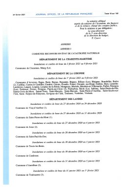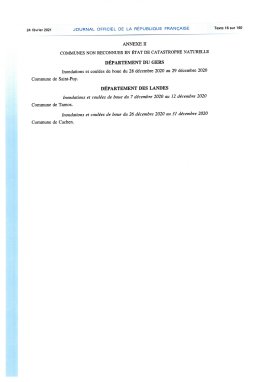 Les personnes sinistrées disposent d’un délai de 10 jours à compter de la parution de cet arrêté pour déposer auprès de leur assurance un état estimatif des dommages.