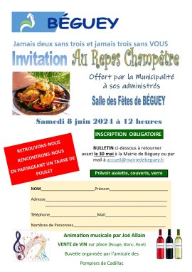 – ATTENTION : Inscriptions obligatoires avant le 30 mai 2024 à la mairie de BEGUEY, par téléphone au 05.56.62.95.36 ou par mail à accueil@mairiedebeguey.fr