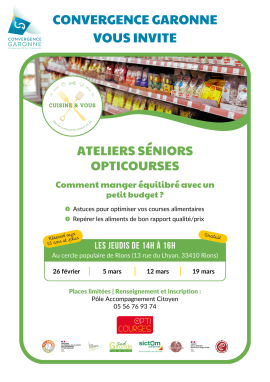 Il s’agit d’un programme de 4 ateliers de 2H00 de promotion de la santé qui permet de manger équilibré sans dépenser plus.