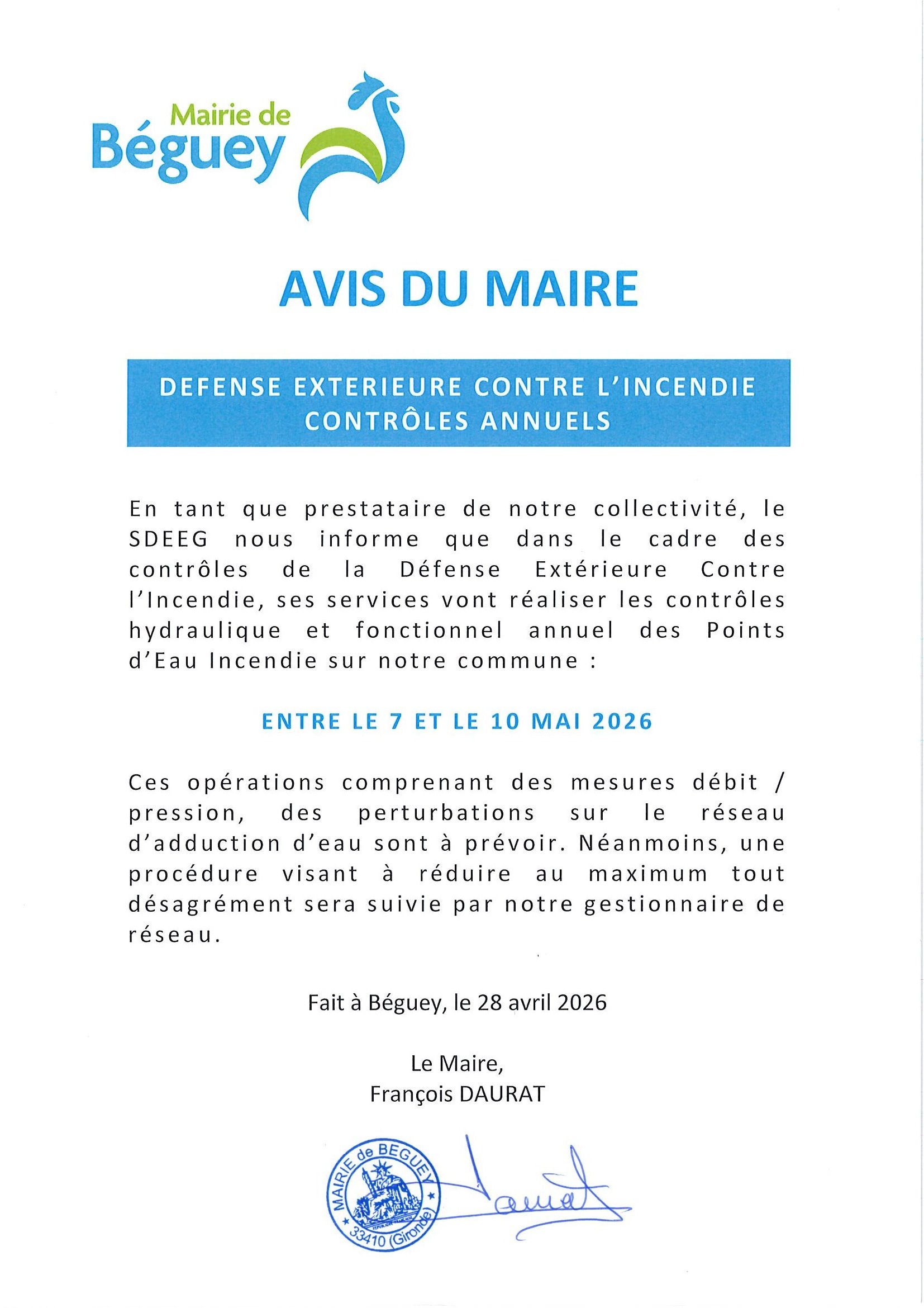 CONTROLE DES POINTS D’EAU INCENDIE