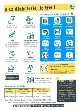 A partir du lundi 15 mars 2021, les 6 déchèteries du SEMOCTOM, dont celle de BEGUEY, passent en horaire de haute saison