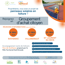 A destination des particuliers propriétaires, et via un accompagnement neutre de l’association girondine « Les Amis de Solévent », Tiers de Confiance proposé par le Pôle Territorial Sud Gironde, le groupement d’achat citoyen permet de bénéficier :