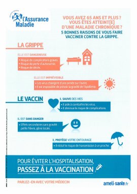L’Assurance Maladie lance de nouveau cet automne 2015 une campagne de sensibilisation intitulée : « Grippe : pour éviter l’hospitalisation, passez à la vaccination !
