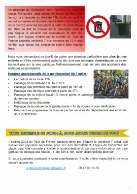 LA 7ème ETAPE DU TOUR DE FRANCE 2023 PASSE PAR BEGUEY LE VENDREDI 7 JUILLET 2023 !