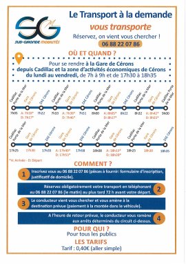 – Le TAD Zonal : un dispositif de rabattement vers la Gare de Cérons, depuis Cadillac et la Zone d’Activités de Cérons :