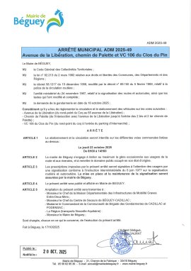 ARRETE MUNICIPAL ADM 2025-49 - Avenue de la Libération - Chemin de Palette et Voie Communale n° 106 du Clos du Pin : stationnement et circulation interdits le jeudi 23 octobre 2025 de 8H00 à 14H00.